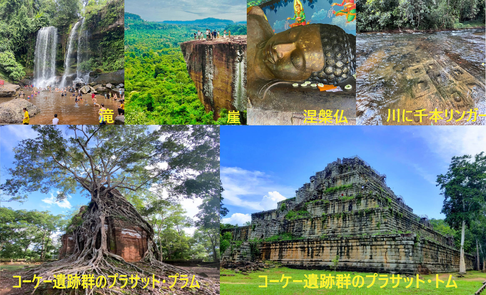 終日:プノンクレーン山(崖、滝、千本リンガー、巨大涅槃仏)+コーケー遺跡