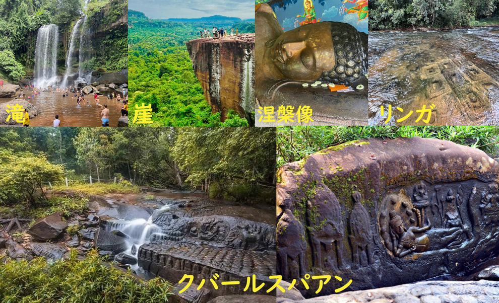 ●千本リンガ(Thousand Lingas):川の底に無数のリンガ(ヒンドゥー教のシンボル)が彫られた神聖な場所。クメール王朝時代に作られ、川の水が聖なるものとされています。